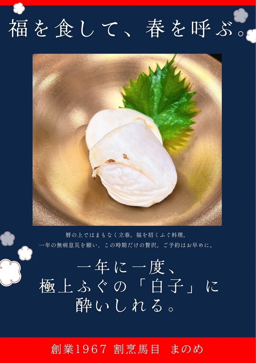 この時期にしか味わえない「極上の白子」との出会いを、どうぞお見逃しなく。