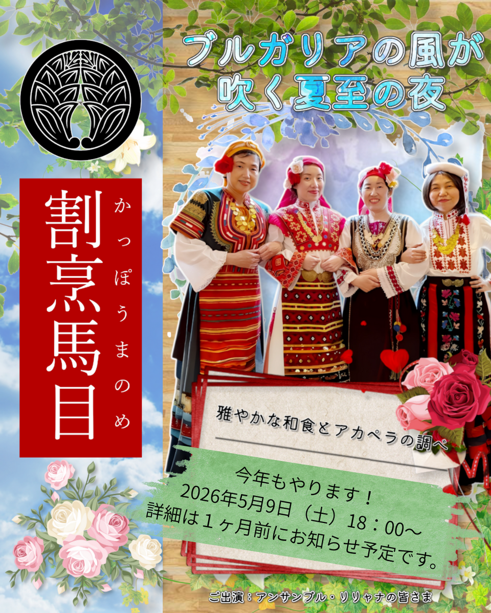 【立春】光の中に春を見つけて!5/9「ブルガリア民謡と日本料理」@馬目開催!
