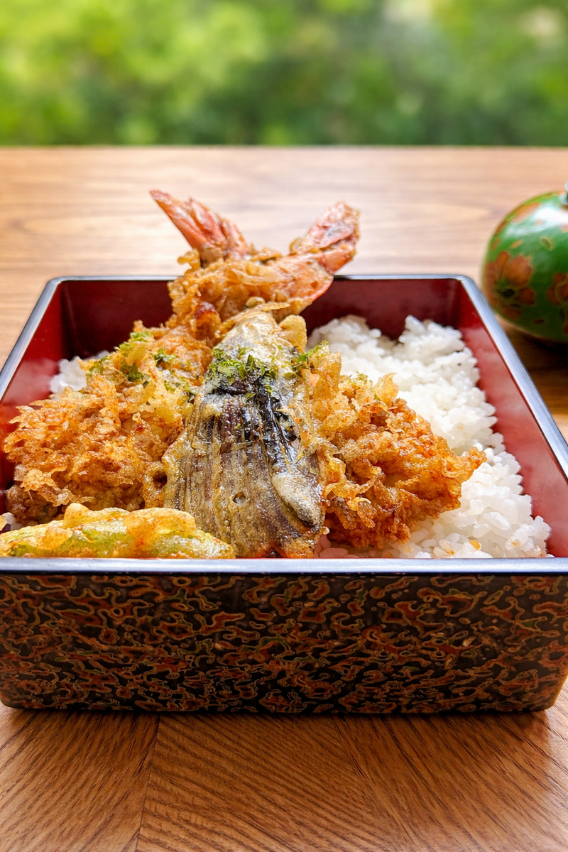 復刻版【贅沢な天重】〜1967年創業以来愛される老舗の味〜 創業から半世紀以上。代々受け継いできた秘伝のタレと、大将が厳選した大海老。歴史の重みと季節の香りを、ランチならではの気軽さでお楽しみいただけます。